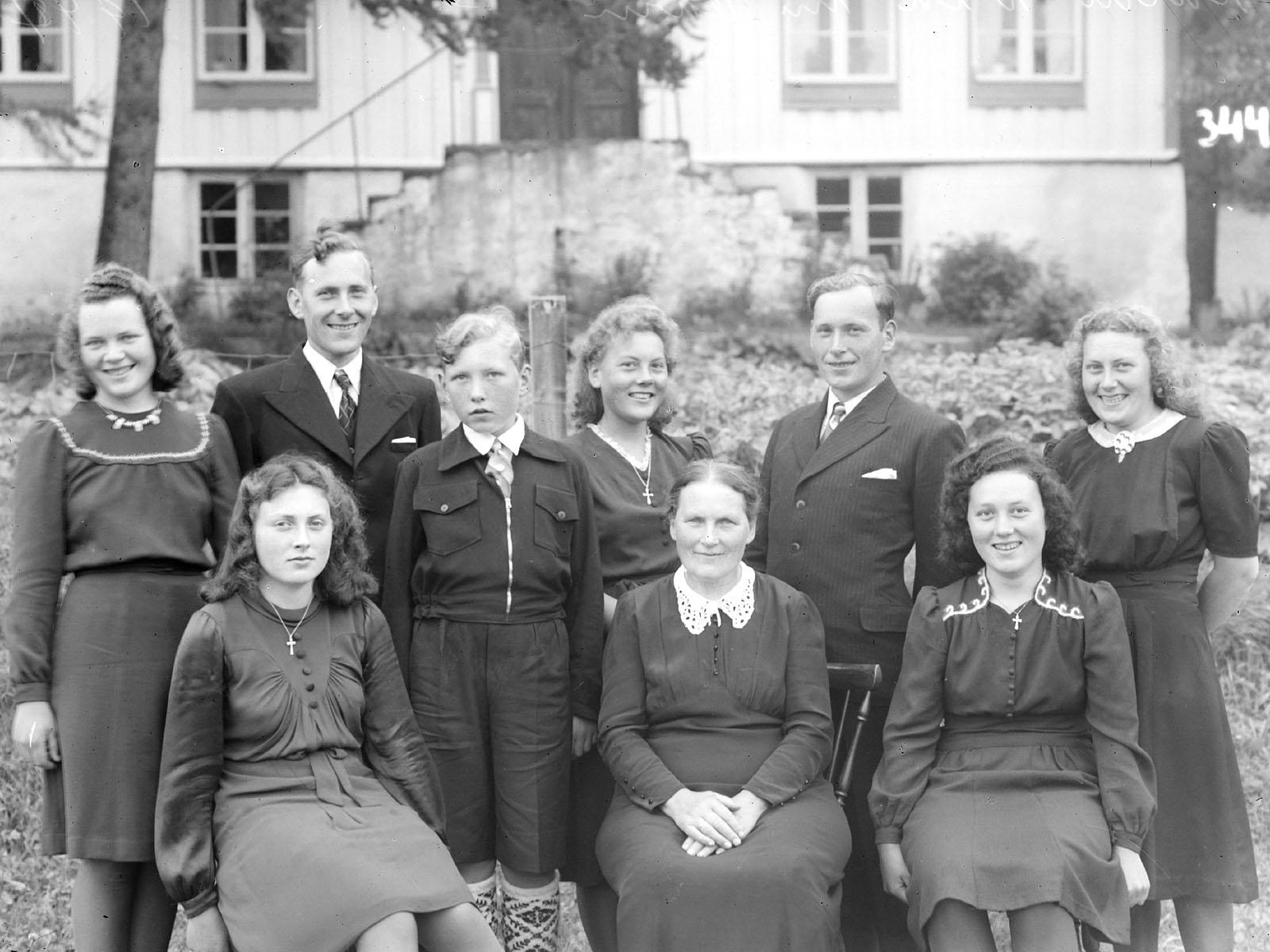 Karen Brynhilde Vik med Magnhild, Ola, Arnt, Ane, Erling, Marit, Kirsten og Ingrid.