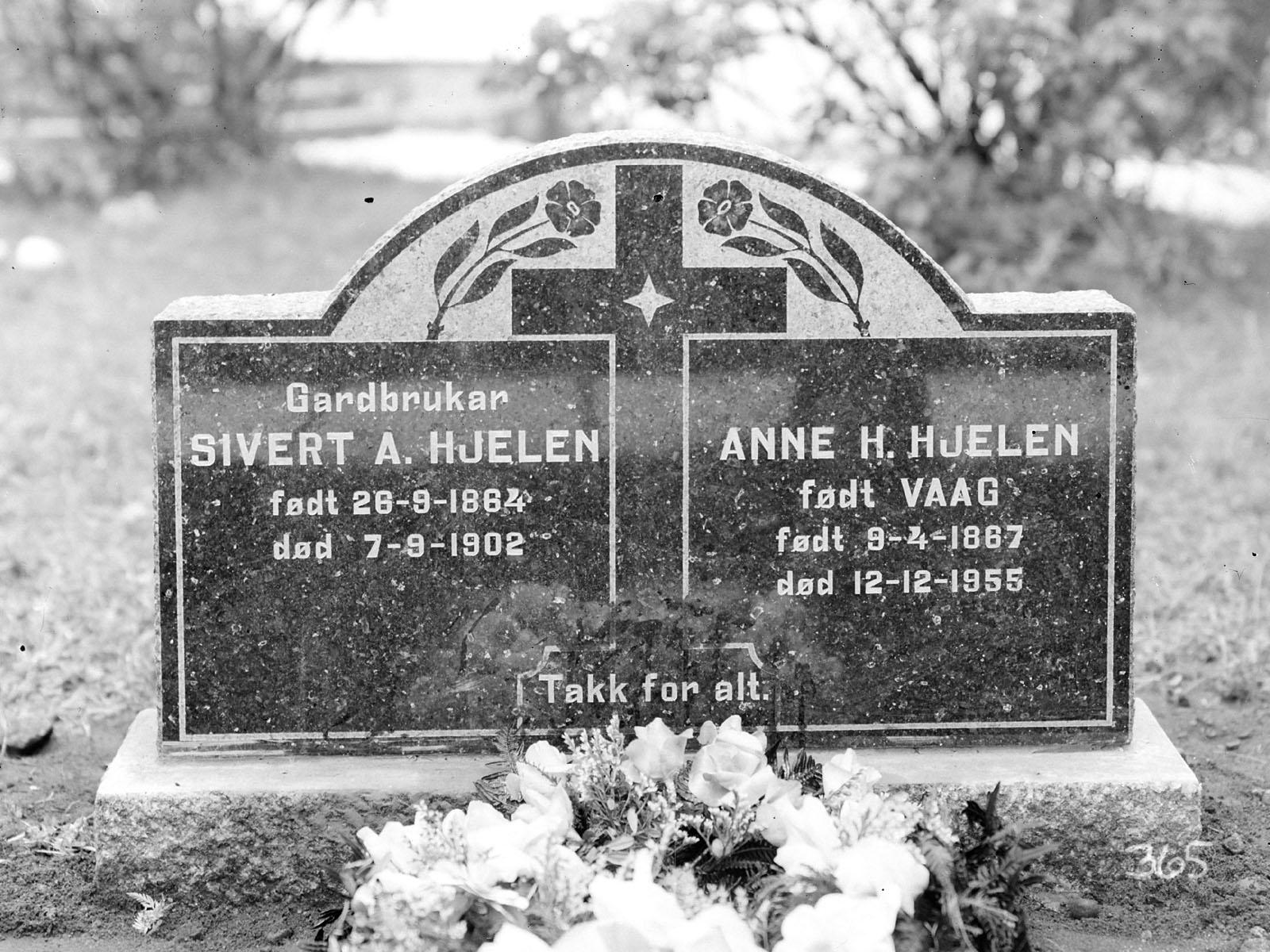 0365: Gravstøtte: Sivert A. Hjelen og Anne H. Hjelen