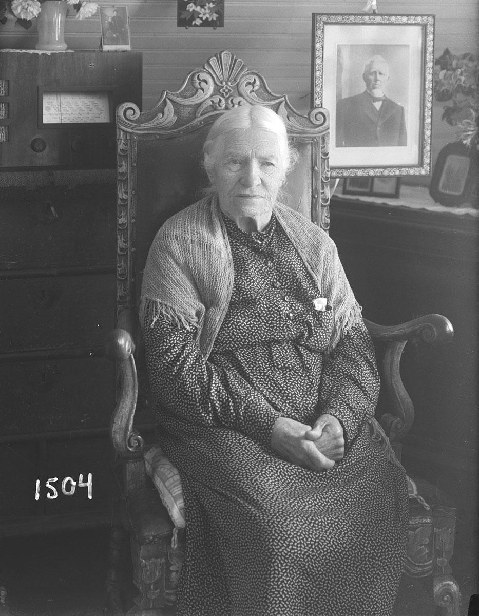 Bildet i bakgrunnen er av mannen hennes, Lars Andersson Todal (1837-1927).